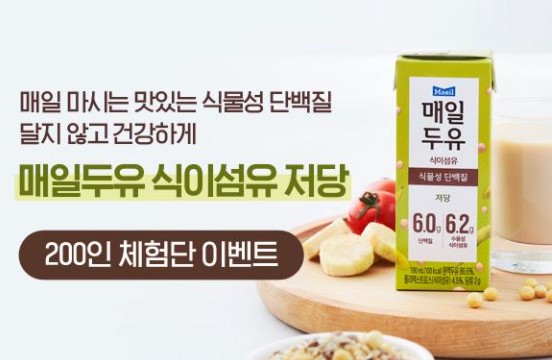 매일유업이 ‘매일두유 식이섬유 저당’ 출시 기념으로 200명의 체험단을 모집한다.